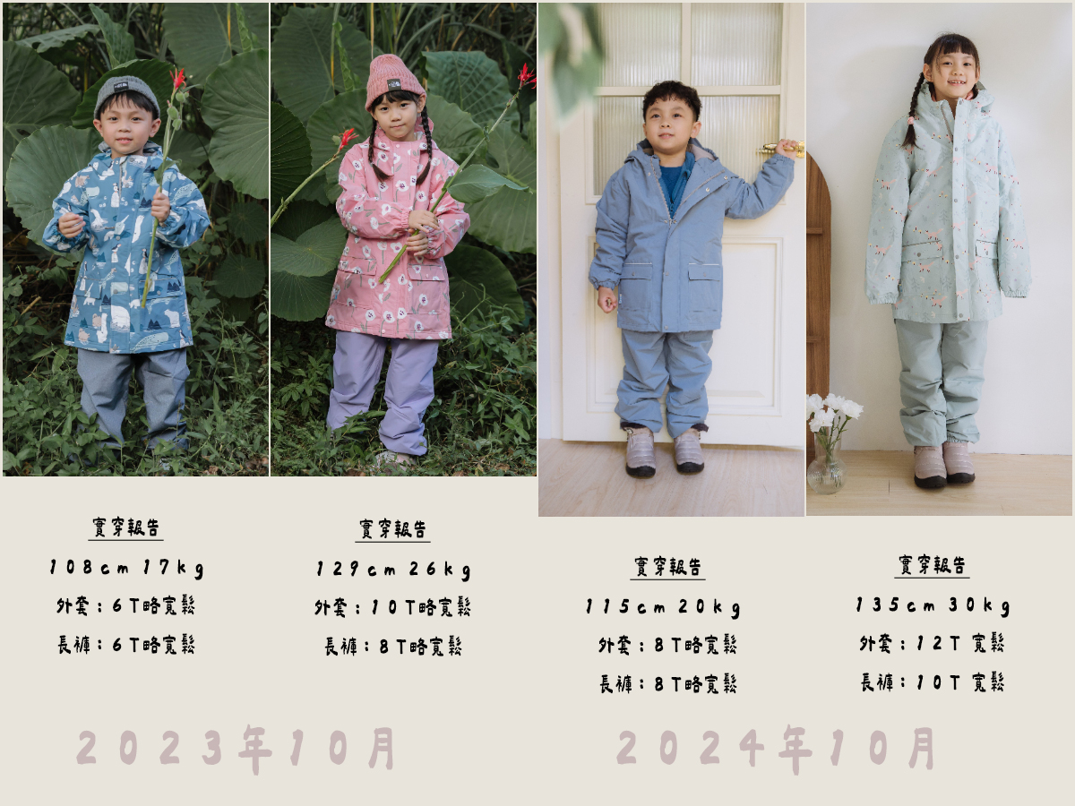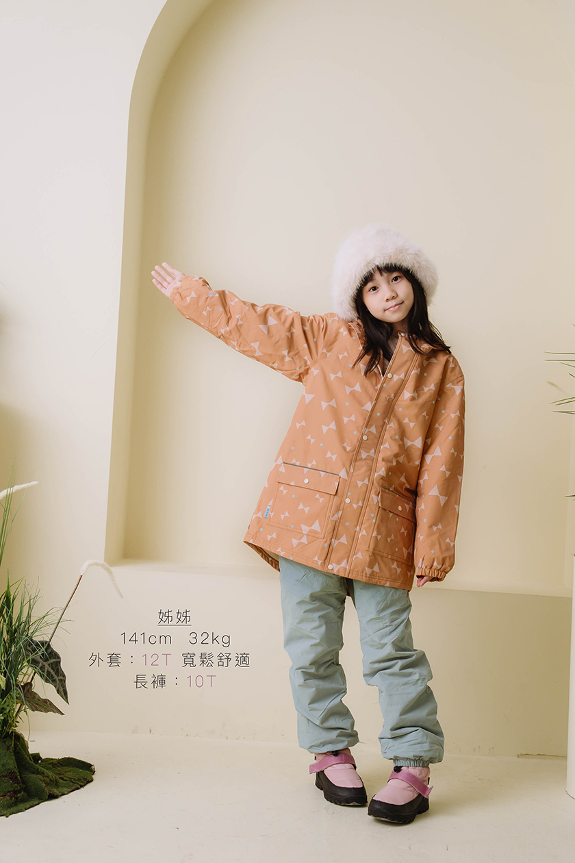 所以她去年( 135cm 30kg )外套就穿12T,到今年 141cm 32kg. 抽高了 外套依然穿12T