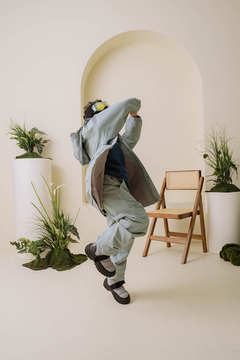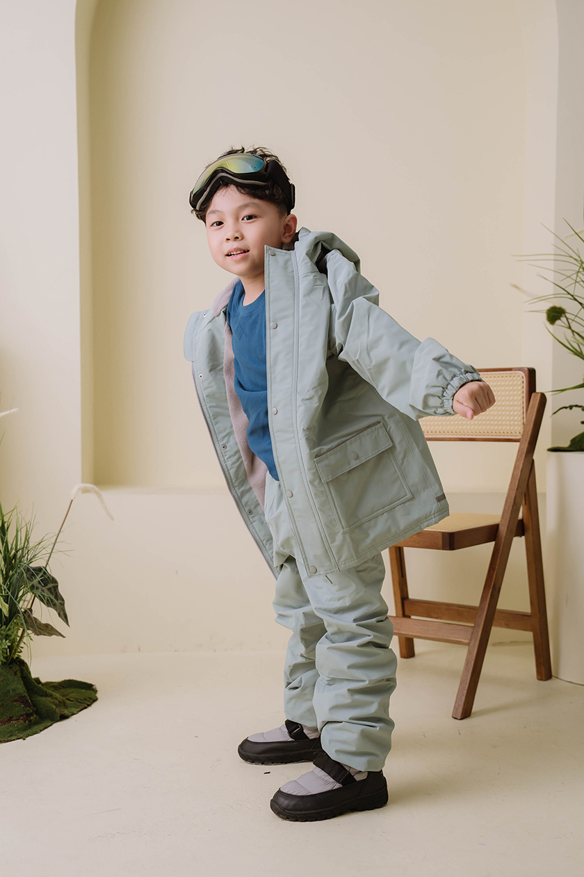 雪融化就會變水,Jan&Jul的外套&褲子可以讓水氣不進入衣物內!保持乾爽