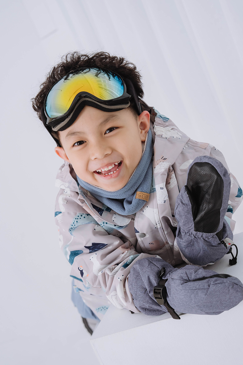 ☺ Riley 去年身高卡在10T~12T之間~去滑雪運動要拿大!